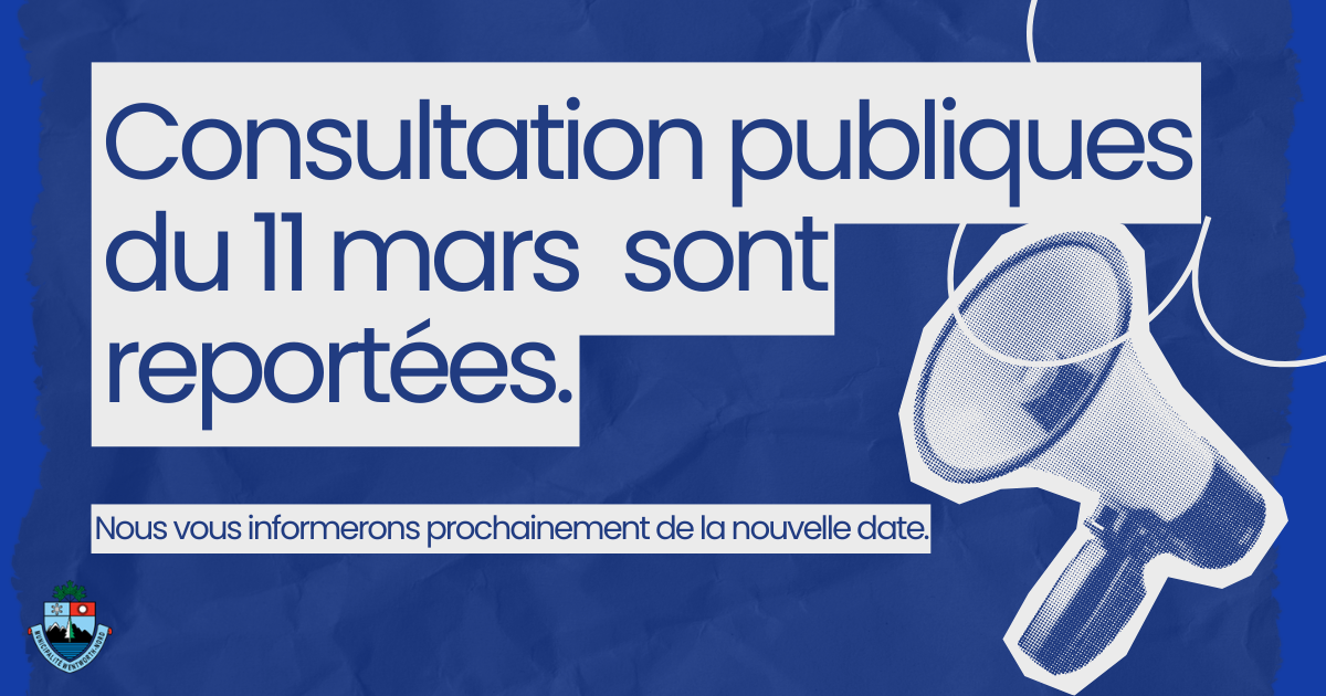 En raison des conditions météorologiques, les consultations publiques prévues le 11 mars sont reportées.