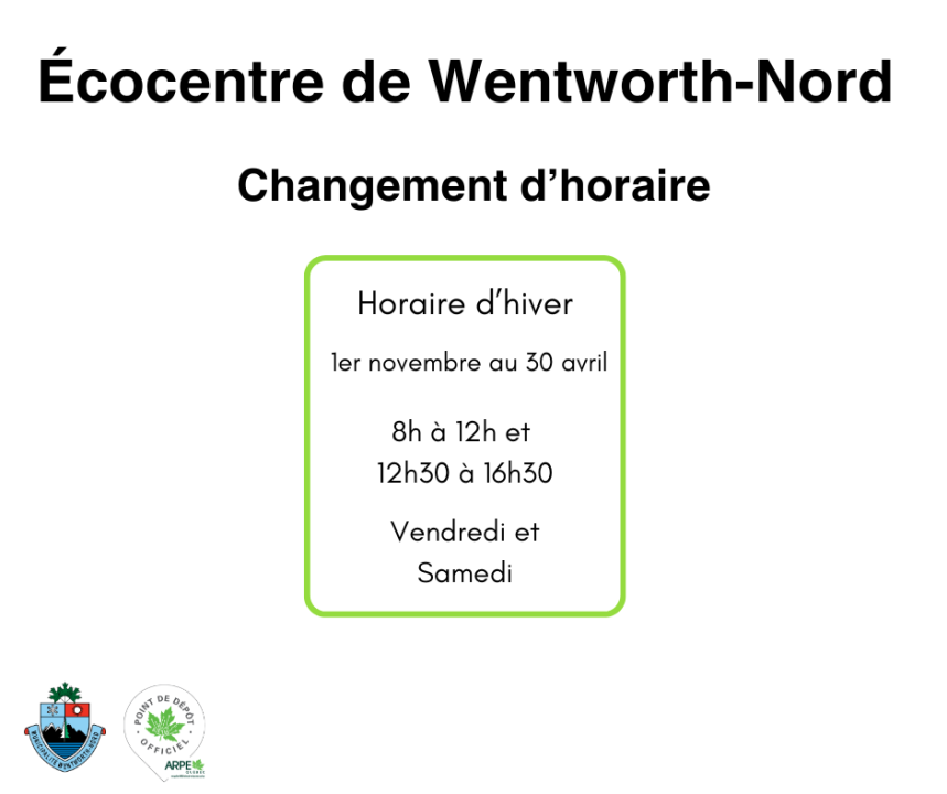 C’est la dernière semaine de l’horaire d’été! À compter du 1er novembre, l’écocentre sera ouvert les vendredis et […]