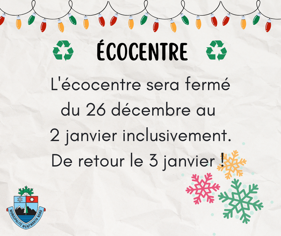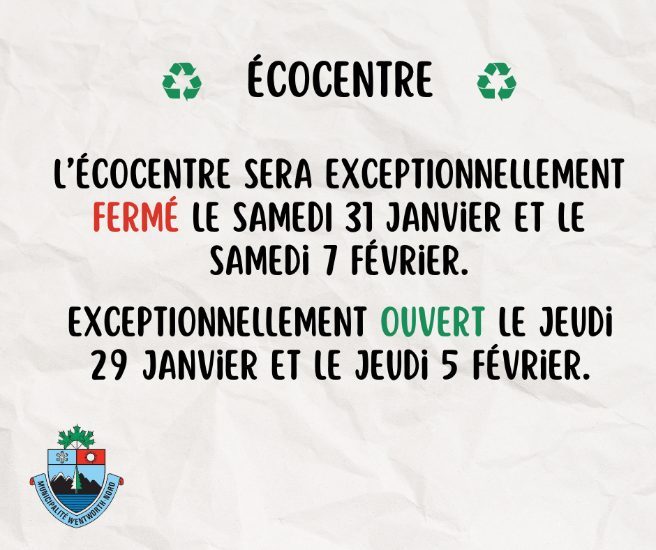 À compter du 1er novembre, l’écocentre sera ouvert les vendredis et samedis seulement.