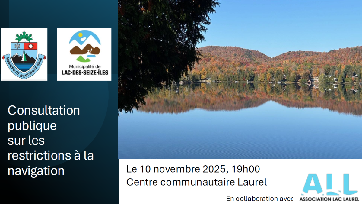 Les municipalités de Wentworth-Nord et de Lac-des-Seize-Îles souhaitent adopter, avec l’approbation de Transport Canada, un Règlement sur les restrictions visant l’utilisation des bâtiments (RRVUB), en vertu de la Loi de 2001 sur la marine marchande du Canada.